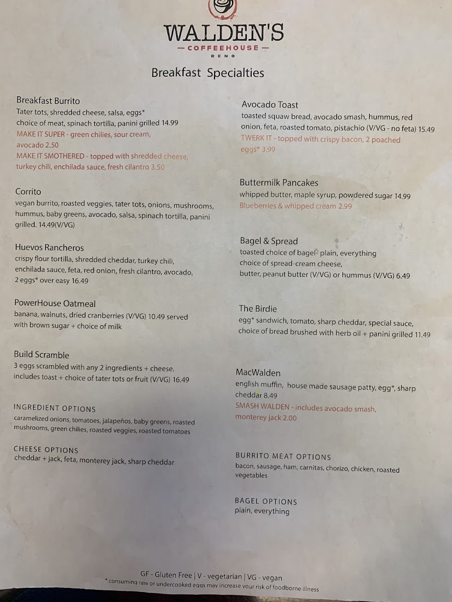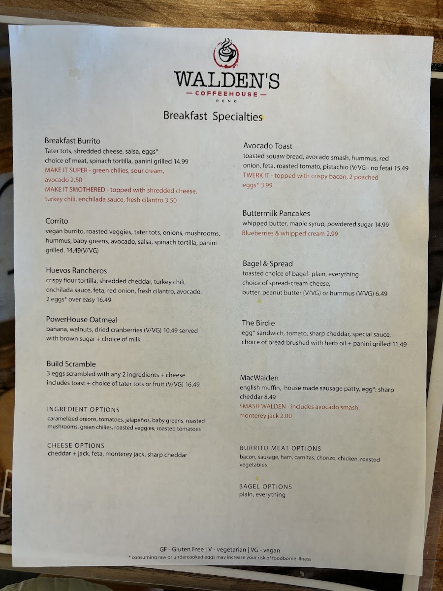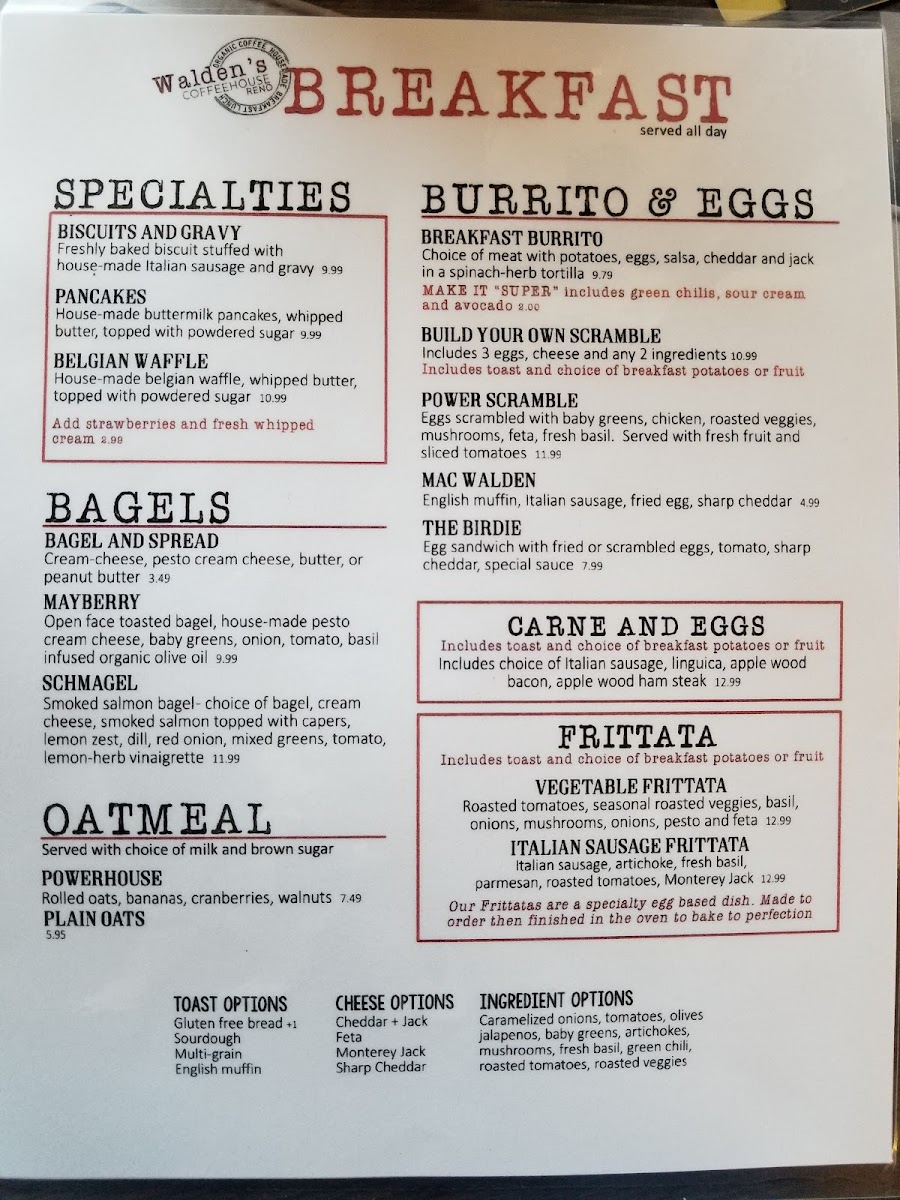 Walden's Coffeehouse- Breakfast & Coffee in Reno Menu