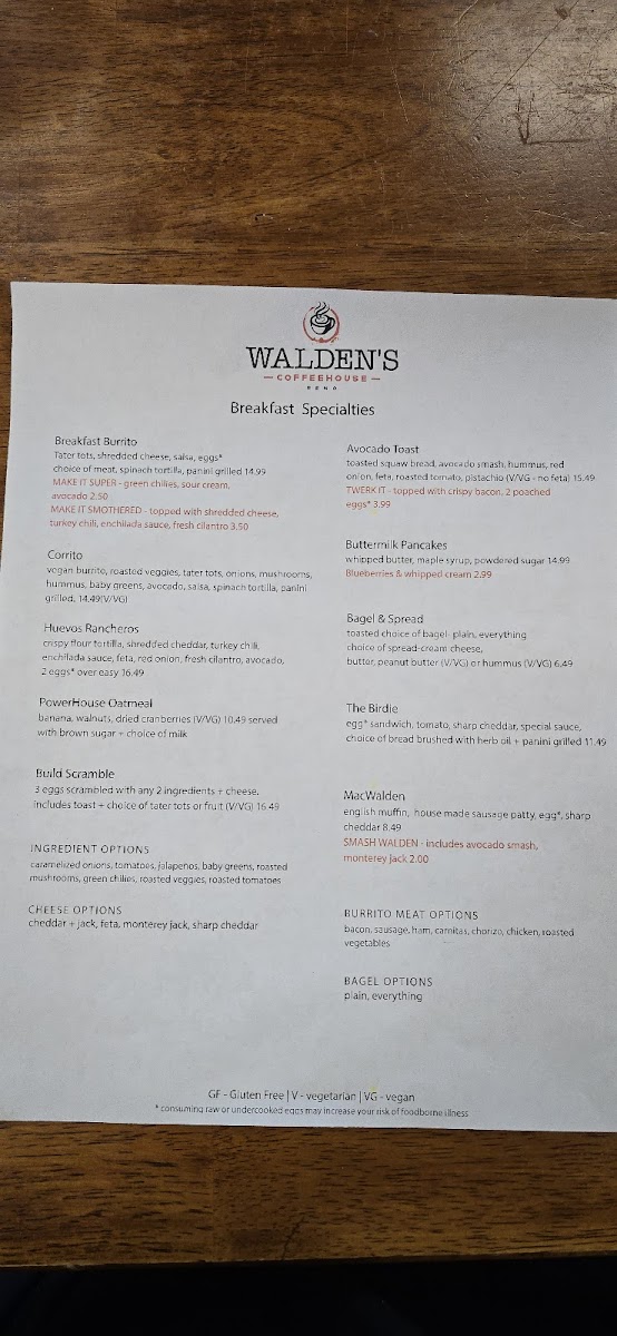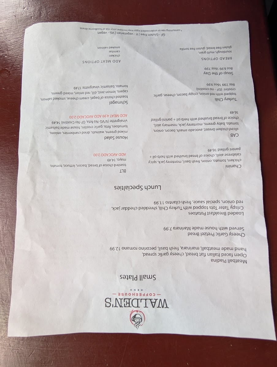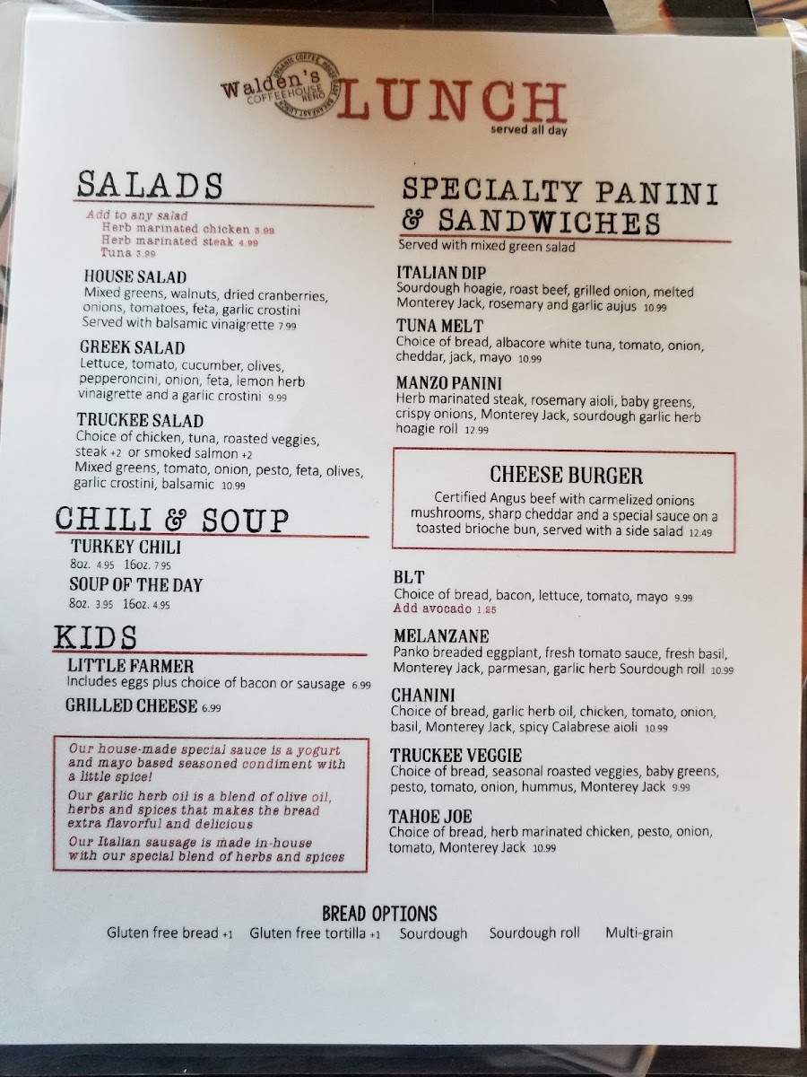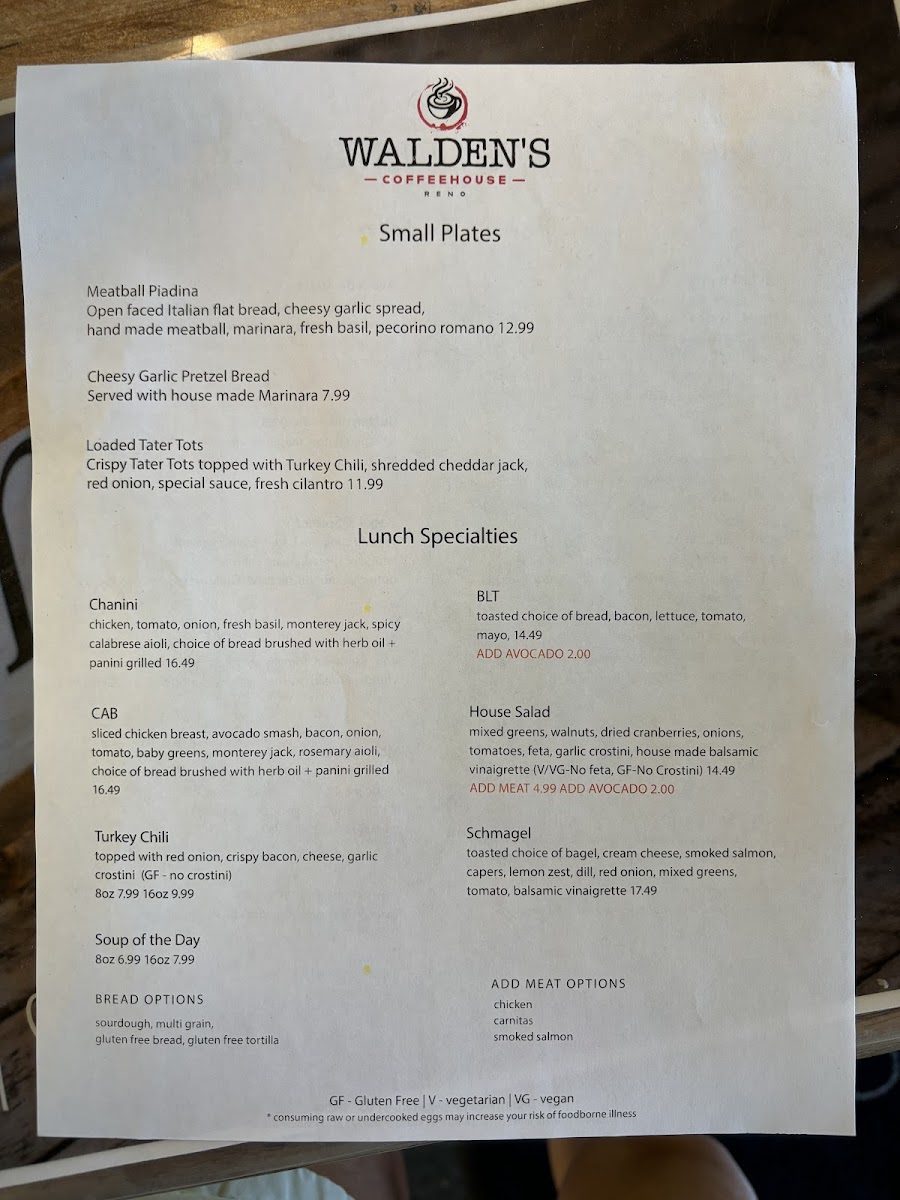 Walden's Coffeehouse- Breakfast & Coffee in Reno Menu